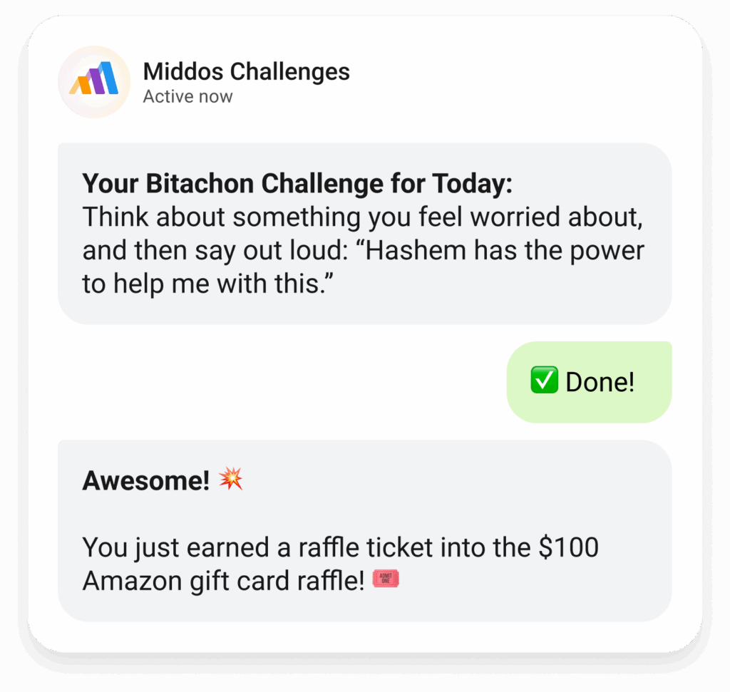 Every time you complete a Bitachon challenge, you’ll earn another raffle ticket for the chance to win a $100 Amazon gift card!*